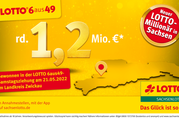 SACHSENLOTTO informiert Wieder ein Millionengewinn mit „6 Richtigen“ im Freistaat: Lottospielerin im Landkreis Zwickau erhält 1,2 Millionen Euro Leipziger Millionär kam entspannt zur Gewinnanmeldung Nur zwei Wochen nachdem ein Leipziger zum...